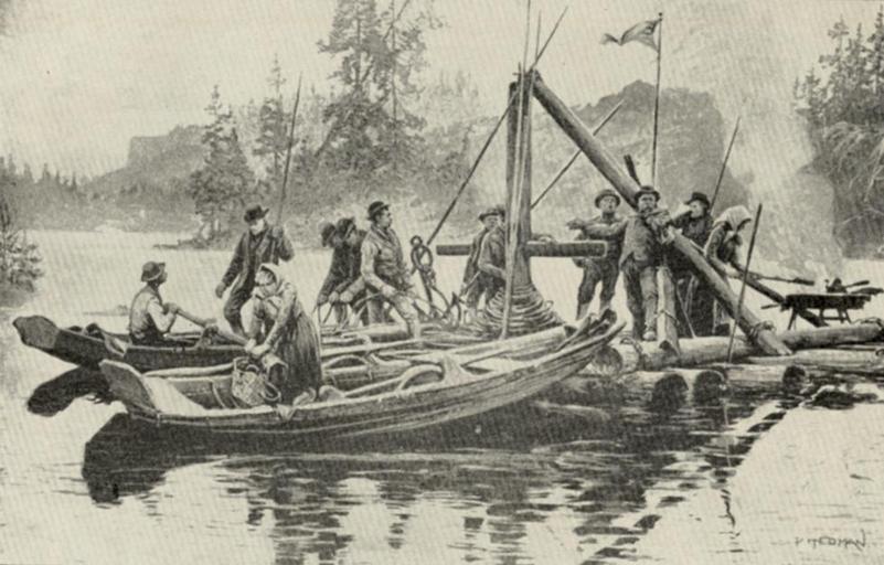 | Keywords: Pelle Hedman "Spelflotte på norrländsk älv" c 1885.jpg en A windlass raft spelflotte on a river in the Northlands of Sweden It was used to drag timber across water by winding a rope around the windlass which was attached to one or more rock-mounted rings ashore Collection of uploader Pelle Hedman circa 1890 scanned in 2009 by Southerly Clubs PD-art Ristesson History Social meetings Pelle Hedman Southerly Clubs Image Archives | ||||
