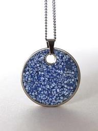 Keywords: pendant necklace round blue steel concrete jewelry jewellery fashion accessory gift elegance glamour shiny metal woman present