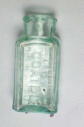 Keywords: saint john saintjohn bottle new brunswick newbrunswick st john stjohn drugstore patent medicines patentmedicines druggist indoor drawing A tiny 2" tall , rolled lip, aqua ,patent medicine . Embossed all around. Left panel : Sugar, Right panel: Pills. see other photo for front. Blank base. A tiny 2" tall , rolled lip, aqua ,patent medicine . Embossed all around. Left panel : Sugar, Right panel: Pills. see other photo for front. Blank base. |