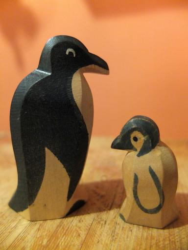 Keywords: penguin parent mother father child close distance relationship toys wood