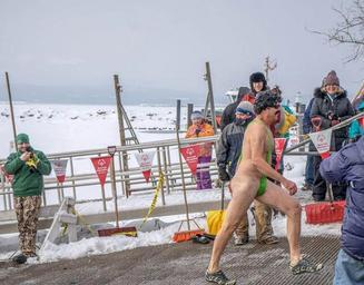 Keywords: penguin plunge borat vermont special olympics winter fund raiser costume person people male happy mature smiling tradition cheerful man character