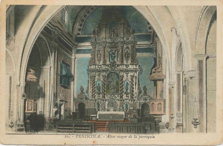 Keywords: Peniscola altar mayor.jpeg fr Peñiscola - autel principal de l'église paroissiale vers 1930 disparu pendant la guerre es Peñiscola - altar mayor de la parroquia años 1930 antes de la guerra 2012-06-17 carte postale ancienne author PD-old-auto spain 1930 Uploaded with UploadWizard Church of Santa Maria Peniscola Altars in the Land of Valencia Peniscola Old postcards of the Land of Valencia 1930 postcards Images by User Fagairolles 34
