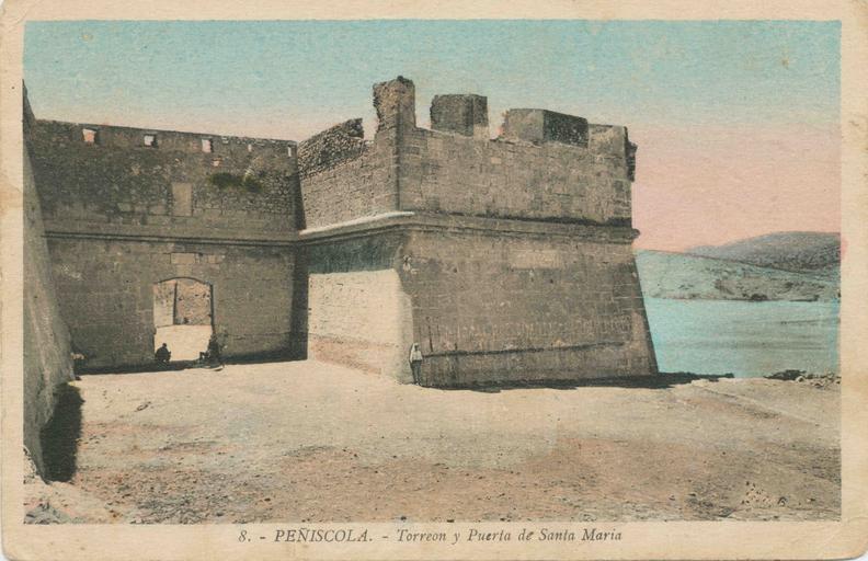 | Keywords: Peniscola Puerta Sta Maria (1930).jpeg fr Peñiscola - porte Santa-Maria et Torreon vers 1930 es Peñiscola - puerta Santa-Maria y Torreon años 1930 2012-06-17 carte postale ancienne author PD-old-auto spain 1930 Uploaded with UploadWizard Peniscola Old postcards of the Land of Valencia 1930 postcards Peníscola city walls Gates in the Land of Valencia Images by User Fagairolles 34 | ||||