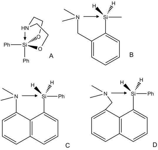 Keywords: Penta sil.png en pentacoordinated silicon compounds own Chem540f09grp8 2009-11-21 Organosilanes Chemical bonding