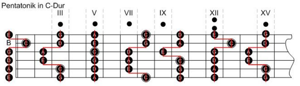 Keywords: Pentatonik in C-Dur schneiden.jpg Eigenanfertigung 2005-11-05 own assumed Red Rooster Scales on guitar