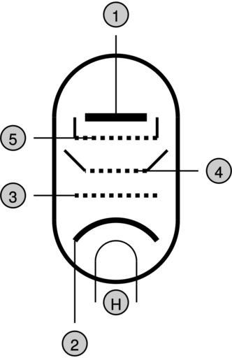 | Keywords: Pentode-Symbol white.svg based on Image Pentode-Symbol svg Symbol für eine Pentode 1 Anode 2 Kathode 3 Steuergitter<br> 4 Schirmgitter 5 Bremsgitter<br> H Kathodenheizung Autor Lars H Rohwedder de User RokerHRO Selbst erstellt mit Xfig Quelldatei unter de User RokerHRO/xfig/Pentode-Symbol fig Lizenz Gemeinfrei de German RokerHRO SVG vacuum tubes Pentodes |