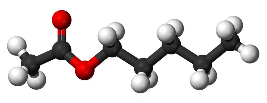 Keywords: Pentyl-acetate-3D-balls.png Pentyl acetate molecule model Pentylacetat molekylmodell own Kemikungen 2009-12-16 Created with GIMP Acetate esters Pentyl esters Pictures by Esquilo