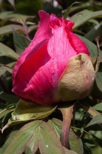 Keywords: peony blossom flower nature flora spring blossom bloom ornamental plant pink green raindrop