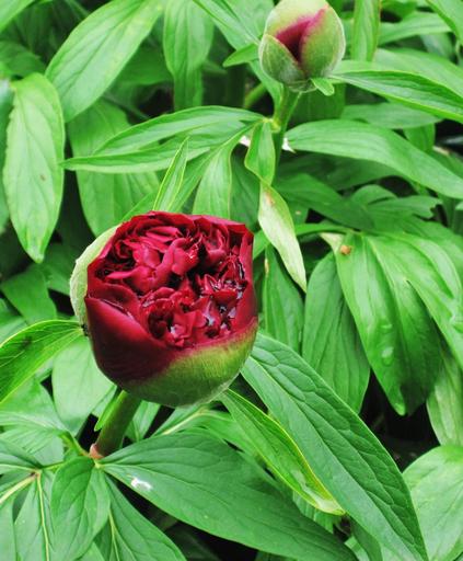Keywords: peony raindrop baby rose bud paeonia pentecost rosengewächs garden bush plant may shrub blossom bloom flower park bloom and bud spring close up bloom nature petals red pentecost