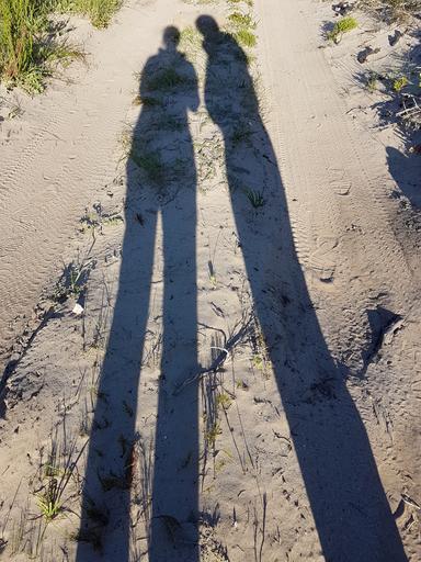 Keywords: people evening two outdoors shadows sand stanford south africa
