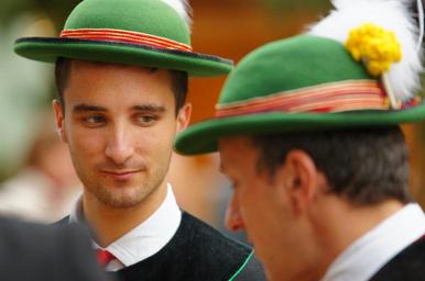 Keywords: people face portrait costume expression wisdom wise look light hair person brown hair tradition south tyrol südtirol closed event ferragosto summer green white yellow eyes folklore