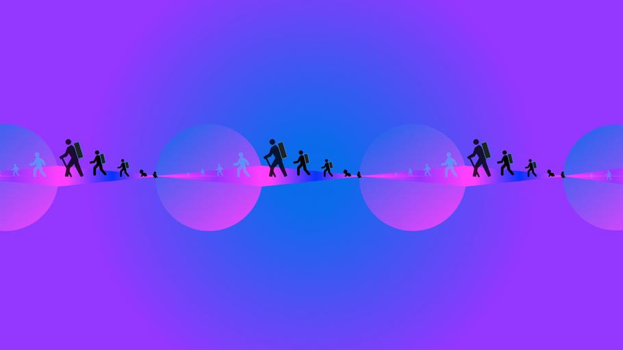 Keywords: people hiking silhouette virtual reality oneness 3d spiritual life travel walking purple background universe