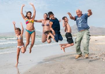 Keywords: beach jumping friends coast hands fun attractive mates teenagers happiness friendship celebration active summer outside freedom people smiling women holidays youth time lifestyle young holding men laughing group good