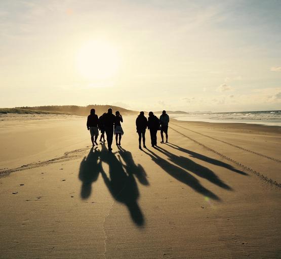 Keywords: people ocean shore beach silhouettes shadows sand landscape seascape sunny sunshine standing clouds waves sea water