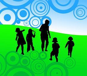 Keywords: people silhouettes landscape outdoors country family life kids children silhouette people group people silhouette youngsters