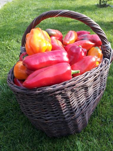 Keywords: pepper vegetable garden basket harvest red pepper