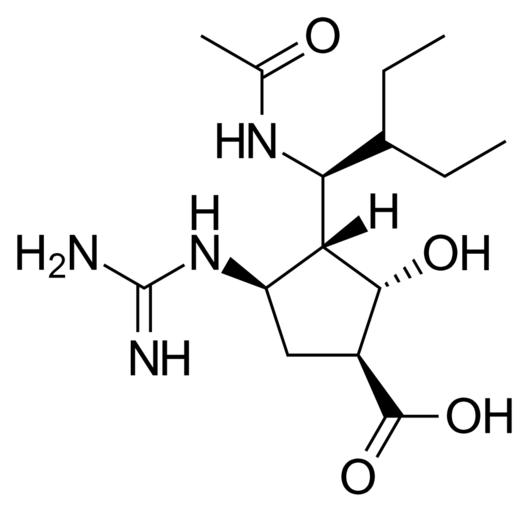 | Keywords: Peramivir.svg Skeletal formula of peramivir Created using http //www acdlabs com/download/chemsk html ACD/ChemSketch 10 0 Inkscape and vim Own work after cite journal World Health Organization International Nonproprietary Names for Pharmaceutical Substances INN Proposed INN List 86 WHO Drug Information 16 1 55 2002 http //whqlibdoc who int/druginfo/16_1_2002_INN86 pdf 2009-04-24 Fvasconcellos Neuraminidase inhibitors Acetamides Guanidines Carboxylic acids Cyclopentanols | ||||