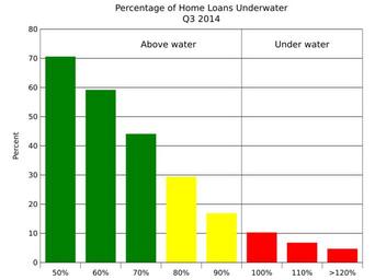 | Keywords: Percentage of US Home Loans Underwater Q3 2014.svg translate yes en Percentage of United States home loans underwater 3rd quarter 2014 http //www corelogic com/about-us/news/corelogic-reports-273 000-residential-properties-regained-equity-in-q3-2014 aspx The x axis is loan to value LTV 2016-08-11 own Delphi234 other versions cc-zero Mortgage crisis |