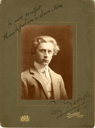 Keywords: historical vintage black and white blackandwhite portraits artists musicians 19th centruy 19thcentruy 1800s old //bergenbibliotek.no/digitale-samlinger” bergenbiblioteknodigitalesamlinger” people black and white Artist: Bartletto Date/place: April, 1905 Subject: Percy Grainger Medium: Photographic posetive Notes: Percy Aldridge Grainger (8 July 1882 – 20 February 1961) was an Australian-born composer, arranger and pianis. Dedication on the photo: "In most heattfelt thankfulness & admiration, Percy Grainger 4. 05". The photo was donated to Bergen Public Library by the Rabe family. Inscription on the back of the photo: "From Nina Grieg Troldhaugen 1916". Original belongs to the Archives at Bergen Public Library Artist: Bartletto Date/place: April, 1905 Subject: Percy Grainger Medium: Photographic posetive Notes: Percy Aldridge Grainger (8 July 1882 – 20 February 1961) was an Australian-born composer, arranger and pianis. Dedication on the photo: "In most heattfelt thankfulness & admiration, Percy Grainger 4. 05". The photo was donated to Bergen Public Library by the Rabe family. Inscription on the back of the photo: "From Nina Grieg Troldhaugen 1916". Original belongs to the Archives at Bergen Public Library