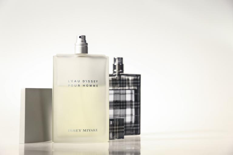 Keywords: perfume still life burberry for men issey miyake bottle products white background