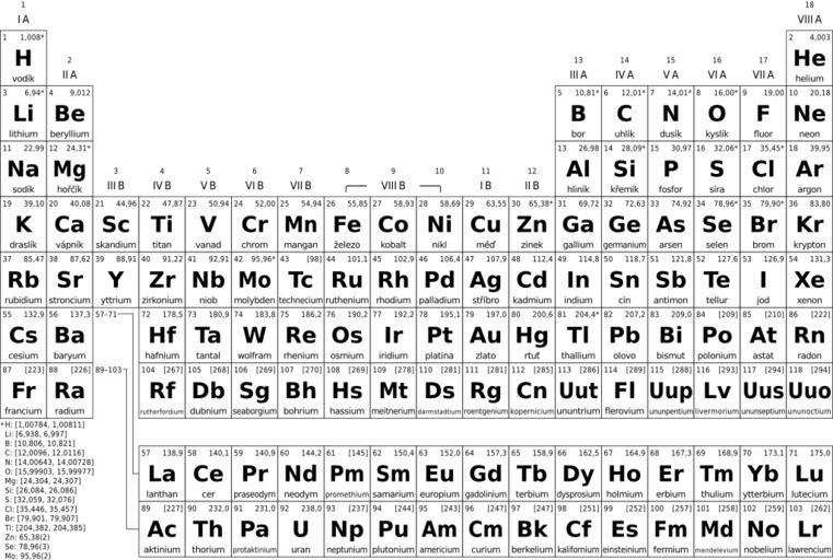 | Keywords: Periodic table simple cs bw.svg en Simple periodic table with Czech element names and standard atomic weights IUPAC 2009 Temporarily converted to paths till fixing Wikipedia ™s font problem with DejaVu Sans Condensed but also the previous version of this image works correctly outside of Wikipedia 2013-10-29 01 34 59 own László Németh n ; Created in LibreOffice 4 1 2 with this LibreLogo program ; Usage Put this code into an English language document in LibO Writer ; fix one program line for older LibreOffice versions see FIXME in the code ; and click on the Start icon of the View»Toolbars»Logo toolbar ; NEED INTERNET CONNECTION TO RUN THIS PROGRAM table data downloaded from Wikipedia lang input Language ca cs de el en fr hu it ru uk bw int input Color 0 COLORED 1 BLACK/WHITE ; Source pages http //www wikidata org/wiki/Q13584100 sources ru D0 A1 D0 BF D0 B8 D1 81 D0 BE D0 BA_ D1 85 D0 B8 D0 BC D0 B8 D1 87 D0 B5 D1 81 D0 BA D0 B8 D1 85_ D1 8D D0 BB D0 B5 D0 BC D0 B5 D0 BD D1 82 D0 BE D0 B2 2 fr Liste_des_ C3 A9l C3 A9ments_chimiques 2 de Liste_der_chemischen_Elemente 1 el CE 9A CE B1 CF 84 CE AC CE BB CE BF CE B3 CE BF CF 82_ CF 87 CE B7 CE BC CE B9 CE BA CF 8E CE BD_ CF 83 CF 84 CE BF CE B9 CF 87 CE B5 CE AF CF 89 CE BD_ CE BA CE B1 CF 84 CE AC_ CE B1 CF 84 CE BF CE BC CE B9 CE BA CF 8C_ CE B1 CF 81 CE B9 CE B8 CE BC CF 8C 2 it Elementi_per_numero_atomico 2 hu K C3 A9miai_elemek_list C3 A1ja 3 ca Llista_d 27elements_per_nombre_at C3 B2mic 2 no Grunnstoffliste 2 cs Seznam_chemick C3 BDch_prvk C5 AF 3 uk D0 A1 D0 BF D0 B8 D1 81 D0 BE D0 BA_ D1 85 D1 96 D0 BC D1 96 D1 87 D0 BD D0 B8 D1 85_ D0 B5 D0 BB D0 B5 D0 BC D0 B5 D0 BD D1 82 D1 96 D0 B2 2 if lang en langpage sourceslang0 langfield sourceslang1 ; column with element names on the Wikipedia page GLOBAL annotation posx posy size font font2 lang font DejaVu Sans font2 DejaVu Sans Condensed ; Wikimedia has got problem with it convert the result to path in Inkscape if needed posx 30 posy 40 size 42 ; load and process element data from Wikipedia embedded Python exec import urllib request exec data urllib request urlopen http //en wikipedia org/w/index php action raw title List_of_elements readlines exec table for j in i decode utf-8 replace style \\\ background-color 0x replace \\\ split for i in data if re match \ \d+ \ \ i decode utf-8 ; load and process other language data IF lang en exec data urllib request urlopen http // s wikipedia org/w/index php action raw title s readlines lang langpage IF lang de exec langtable i decode utf-8 split d strip split -1 split 0 for i in data if re match \ \d+ \ \ i decode utf-8 langfield-1 ; process and sort German data exec langtable i decode utf-8 split 0 split 0 split -1 strip \t split 0 split < 0 split 0 strip \t split -1 int i decode utf-8 split 2 strip \t for i in data if re match \ \t \d+ \t \ \ i decode utf-8 exec import operator exec langtable sort key operator itemgetter 1 exec langtable i0 for i in langtable langtable ; a few fixes table793 Mercury ; instead of Mercury element table117 24 31 ; Mg table257 55 85 ; Fe table637 157 3 ; Gd ; add missing positions TO the table FOR i IN RANGE 56 71 tablei5 i “ 56 “ 4 tablei6 8 5 FOR i IN RANGE 88 103 tablei5 i “ 88 “ 4 tablei6 9 5 ; helper functions TO width_of_last_object OUTPUT _ drawpage getByIndex _ drawpage getCount -1 getSize Width / 100 __MM_TO_PT__; IN PT END ; FIXME remove the space before the END TO delete_last_object _ drawpage remove _ drawpage getByIndex _ drawpage getCount -1 END TO element size d l18n bw PENUP POSITION posx + INT d5 size posy + FLOAT d6 size 1 2 HEADING 0 ; show group number IF INT d0 IN 1 2 4 5 6 7 8 9 21 22 23 24 25 26 27 28 29 30 IF lang in ca en FORWARD size/2 + size/5 LABEL 0 1 d5 FORWARD size/2 + size/5 LABEL 0 4 5 d5 groupname 1 I ¯A 2 II ¯A 3 III ¯B 4 IV ¯B 5 V ¯B 6 VI ¯B 7 VII ¯B 8 • ” ” ” 9 VIII ¯B 10 ” ” ” •® 11 I ¯B 12 II ¯B 13 III ¯A 14 IV ¯A 15 V ¯A 16 VI ¯A 17 VII ¯A 18 VIII ¯A d5 IF lang not in hu groupname SUB groupname FONTSIZE 10 LABEL 0 1 groupname BACK size/2 + size/5 IF bw FILLCOLOR WHITE FILLCOLOR INT d1 PENDOWN RECTANGLE size size 1 2 PENUP IF M IN d2 OR m IN d2 OR 2 < COUNT d2 FONTFAMILY font2 FONTFAMILY font FONTWEIGHT BOLD FONTSIZE size/2 1 TEXT d2 FONTWEIGHT UPRIGHT FONTFAMILY font BACK size 1 2/2-size/20 fontsiz 5 6 FONTSIZE size/fontsiz IF l18n name l18nINT d0 -1 name d3 if lang de name name lower LABEL 0 1 name fontdescratio 492/2048 ; DejaVu Sans Condensed IF width_of_last_object > size 0 95 delete_last_object FONTFAMILY font2 LABEL 0 1 name width width_of_last_object IF width > size 0 95 delete_last_object fontsiz2 size/fontsiz size/width 0 95 FORWARD size/fontsiz fontdescratio - fontsiz2 fontdescratio FONTSIZE fontsiz2 LABEL 0 1 name BACK size/fontsiz fontdescratio - fontsiz2 fontdescratio FONTSIZE size/5 8 FONTFAMILY font2 FORWARD -size/2 + size/20 size 1 2/2-size/20 + size 0 6 “ size/20 HEADING 0 LABEL 1 -1 d0 RIGHT 90 FORWARD size “ size/10 LEFT 90 weight FINDALL \d+ \d+ ”ƒ\\d+\ d7 0 IF weight0 wsize COUNT FINDALL \d+ weight 0 w2size COUNT FINDALL \d+ weight 0 IF w2size > 4 “ wsize weight + STR 4 “ wsize + f FLOAT weight IF d2 IN H Li B C N O Mg Si S Cl Br Zn Se Mo Tl weight weight + IF lang not in en weight SUB weight LABEL -1 -1 weight END HOME CLEARSCREEN HIDETURTLE PENSIZE 0 5 PENUP bwtext FALSE TRUE _bw bw ; save black and white images with _bw label PICTURE periodic_table_simple_ s s svg lang bwtext FONTSIZE size/5 8 FONTFAMILY font2 ; legend POSITION posx + size/2 + size/5 8/2 posy + size 1 2 7 5 + size/20 HEADING 0 LABEL -1 -1 legend H 1 00784 1 00811\nLi 6 938 6 997\nB 10 806 10 821\nC 12 0096 12 0116\nN 14 00643 14 00728\nO 15 99903 15 99977\nMg 24 304 24 307\nSi 26 084 26 086\nS 32 059 32 076\nCl 35 446 35 457\nBr 79 901 79 907\nTl 204 382 204 385\nZn 65 38 2 \nSe 78 96 3 \nMo 95 96 2 if lang not in en legend SUB legend LABEL 1 -1 legend POSITION posx + size 3 5 posy + size 1 2 8 5 HEADING 0 PENDOWN LE
