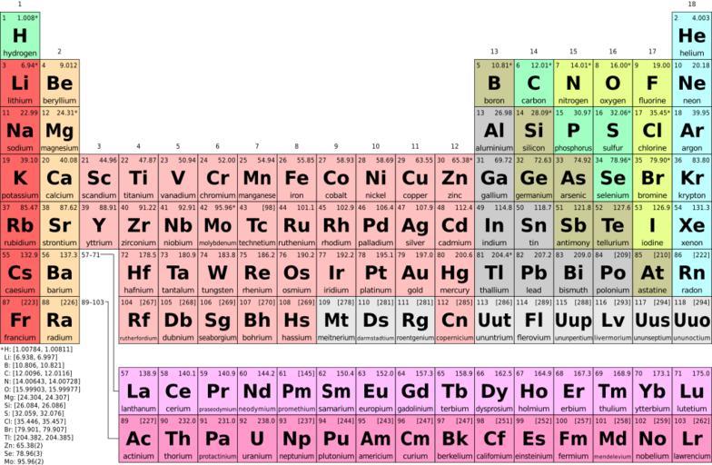 | Keywords: Periodic table simple en.svg en Simple periodic table with English element names and standard atomic weights IUPAC 2009 Temporarily converted to paths till fixing Wikipedia s font problem with DejaVu Sans Condensed but also the previous version of this image works correctly outside of Wikipedia 2013-09-25 15 12 02 own LĂĄszlĂł NĂ©meth Source code ; Created in LibreOffice 4 1 2 with this LibreLogo program ; Usage Put this code into an English language document in LibO Writer ; fix one program line for older LibreOffice versions see FIXME in the code ; and click on the Start icon of the View»Toolbars»Logo toolbar ; NEED INTERNET CONNECTION TO RUN THIS PROGRAM table data downloaded from Wikipedia lang input Language af ca cs de el en et fi fr it nl pt pt-br bw int input Color 0 COLORED 1 BLACK/WHITE ; Source pages http //www wikidata org/wiki/Q13584100 ; data fields Wikipedia page column of element names sorting by this column optional sources ru D0 A1 D0 BF D0 B8 D1 81 D0 BE D0 BA_ D1 85 D0 B8 D0 BC D0 B8 D1 87 D0 B5 D1 81 D0 BA D0 B8 D1 85_ D1 8D D0 BB D0 B5 D0 BC D0 B5 D0 BD D1 82 D0 BE D0 B2 2 fr Liste_des_ C3 A9l C3 A9ments_chimiques 2 de Liste_der_chemischen_Elemente 1 3 el CE 9A CE B1 CF 84 CE AC CE BB CE BF CE B3 CE BF CF 82_ CF 87 CE B7 CE BC CE B9 CE BA CF 8E CE BD_ CF 83 CF 84 CE BF CE B9 CF 87 CE B5 CE AF CF 89 CE BD_ CE BA CE B1 CF 84 CE AC_ CE B1 CF 84 CE BF CE BC CE B9 CE BA CF 8C_ CE B1 CF 81 CE B9 CE B8 CE BC CF 8C 2 it Elementi_per_numero_atomico 2 hu K C3 A9miai_elemek_list C3 A1ja 3 ca Llista_d 27elements_per_nombre_at C3 B2mic 2 no Grunnstoffliste 2 cs Seznam_chemick C3 BDch_prvk C5 AF 3 uk D0 A1 D0 BF D0 B8 D1 81 D0 BE D0 BA_ D1 85 D1 96 D0 BC D1 96 D1 87 D0 BD D0 B8 D1 85_ D0 B5 D0 BB D0 B5 D0 BC D0 B5 D0 BD D1 82 D1 96 D0 B2 2 et Keemiliste_elementide_loend 2 nl Lijst_van_elementen 2 3 fi Luettelo_alkuaineista 2 3 eo Listo_de_kemiaj_elementoj_la C5 AD_atomnumero 3 pt Anexo Lista_de_elementos_qu C3 ADmicos 2 sv Lista_ C3 B6ver_grund C3 A4mnen 2 3 af Lys_van_elemente_volgens_atoomgetal 2 pl Pierwiastki_chemiczne_wed C5 82ug_liczby_atomowej 2 IF lang en langpage sourceslang 20 langfield sourceslang 21 ; column with element names on the Wikipedia page IF COUNT sourceslang 2 3 langsort sourceslang 22 langsort 0 GLOBAL annotation posx posy size font font2 lang font DejaVu Sans font2 DejaVu Sans Condensed ; Wikimedia has got problem with it convert the result to path in Inkscape if needed posx 30 posy 40 size 42 ; load and process element data from Wikipedia embedded Python exec import urllib request exec data urllib request urlopen http //en wikipedia org/w/index php action raw title List_of_elements readlines exec table for j in i decode utf-8 replace style \\\ background-color 0x replace \\\ split for i in data if re match \ \d+ \ \ i decode utf-8 ; load and process other language data IF lang en exec data urllib request urlopen http // s wikipedia org/w/index php action raw title s readlines lang 2 langpage IF langsort > 0 exec langtable i decode utf-8 split d-1 split 0 split -1 strip \t split 0 split < 0 split 0 strip \t split -1 int i decode utf-8 split d-1 strip \t for i in data if re match \ \t \d+ \t \ \ i decode utf-8 langfield langsort exec import operator exec langtable sort key operator itemgetter 1 exec langtable i0 for i in langtable IF lang no exec data i decode utf-8 replace replace encode utf-8 for i in data IF lang pl exec data i decode utf-8 replace 0 replace replace \x27 encode utf-8 for i in data exec langtable i decode utf-8 replace <td> replace </td> split d split / 0 strip split -1 split 0 for i in data if re match <tr><td> \ \d+ </td> \ \ i decode utf-8 langfield-1 langtable ; a few fixes table793 Mercury ; instead of Mercury element table117 24 31 ; Mg table257 55 85 ; Fe table637 157 3 ; Gd ; add missing positions TO the table FOR i IN RANGE 56 71 tablei5 i 56 4 tablei6 8 5 FOR i IN RANGE 88 103 tablei5 i 88 4 tablei6 9 5 IF lang pt OR lang pt-br FOR i in 1 HidrogĂ©nio/HidrogĂȘnio 7 Azoto/NitrogĂȘnio 8 OxigĂ©nio/OxigĂȘnio 10 NĂ©on/NeĂŽnio 18 Ărgon/ArgĂŽnio 33 ArsĂ©nio/ArsĂȘnio 34 SelĂ©nio/SelĂȘnio 36 CrĂpton/CriptĂŽnio 40 ZircĂłni/ZircĂŽni 42 MolibdĂ©nio/MolibdĂȘnio 44 RutĂ©nio/RutĂȘnio 51 AntimĂłnio/AntimĂŽnio 54 XĂ©non/XenĂŽnio 74 TungstĂ©nio/TungstĂȘnio 75 RĂ©nio/RĂȘnio 86 RĂĄdon/RadĂŽnio 93 NeptĂșnio/NetĂșnio 94 PlutĂłnio/PlutĂŽnio 97 BerkĂ©lio/BerquĂ©lio 99 EinstĂ©nio/EinstĂȘnio 103 LaurĂȘncio/LawrĂȘncio IF lang pt-br ptbr 1 ptbr 0 langtablei0-1 i1 split / ptbr ; helper functions to get_color s ecolors 'alkali metal' 0xff6666 'alkaline earth metal' 0xffdead 'lanthanide' 0xffbfff 'rare earth metal' 0xffbffe 'actinide' 0xff99cc 'superactinide' 0xd1ddff 'eka-superactinide' 0xc6dd9d 'transition metal' 0xffc0c0 'metalloid' 0xcccc99 'noble gas' 0xc0ffff 'poor metal' 0xcccccc 'diatomic nonmetal' 0xe7ff8f 'polyatomic nonmetal' 0xa1ffc3 'unknown' 0xffffff for i in ecolors if i in s output ecolorsi output 0xffffff end TO width_of_last_object OUTPUT _ drawpage getByIndex _ drawpage getCount -1 getSize Width / 100 __MM_TO_PT__; IN PT END ; FIXME remove the space before the END TO delete_last_object _ drawpage remove _ drawpage getByIndex _ drawpage getCount -1 END TO element size d l18n bw PENUP POSITION posx + INT d5 size posy + FLOAT d6 size 1 2 HEADING 0 ; show group number IF INT d0 IN 1 2 4 5 6 7 8 9 21 22 23 24 25 26 27 28 29 30 IF lang in af ca en eo no pl pt pt-br sv FORWARD size/2 + size/5 LABEL 0 1 d5 FORWARD size/2 + size/5 LABEL 0 4 5 d5 groupname 1 I ŻA 2 II ŻA 3 III ŻB 4 IV ŻB 5 V ŻB 6 VI ŻB 7 VII ŻB 8 9 VIII ŻB 10 ź 11 I ŻB 12 II ŻB 13 III ŻA 14 IV ŻA 15 V ŻA 16 VI ŻA 17 VII ŻA 18 VIII ŻA d5 IF lang not in hu groupname SUB groupname FONTSIZE 10 LABEL 0 1 groupname BACK size/2 + size/5 IF bw FILLCOLOR WHITE FILLCOLOR get_color d1 PENDOWN RECTANGLE size size 1 2 PENUP IF M IN d2 OR m IN d2 OR 2 < COUNT d2 FONTFAMILY font2 FON