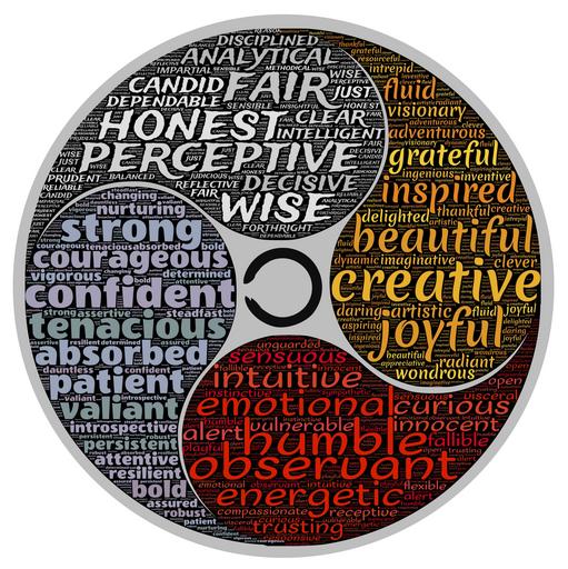 | Keywords: person character characteristics essence being balance dynamism wholeness completeness integration growth dynamic wheel mandala self-discovery self-awareness maturation transformation becoming growing evolving human qualities geometric badge circle round health quality |