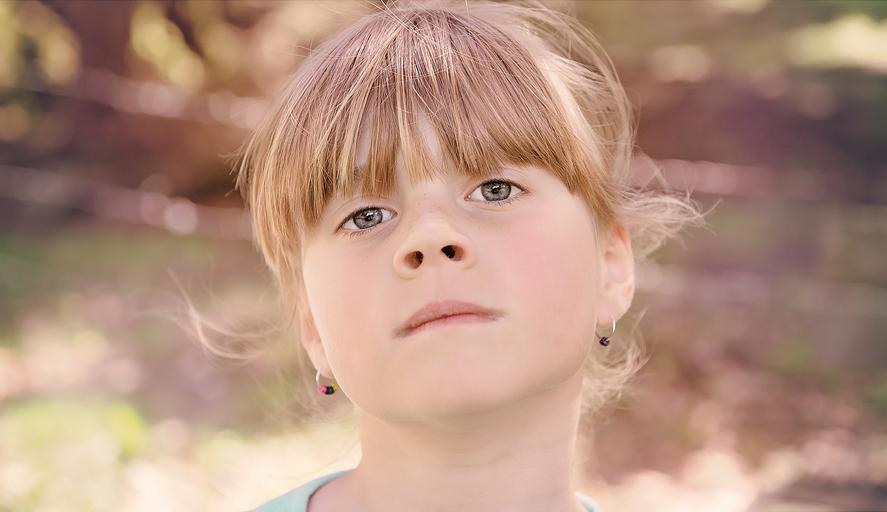 Keywords: person human child girl blond face view out nature portrait close