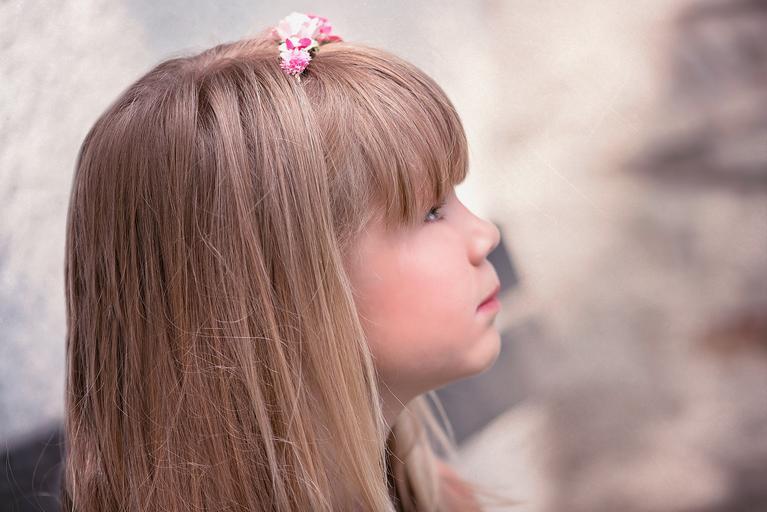 Keywords: person human child girl blond face hair profile from the side portrait close