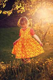 Keywords: person human child girl dress meadow nature evening sun evening light sunlight lighting country life portrait