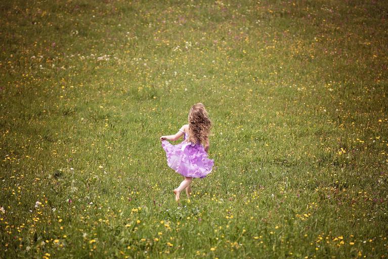 Keywords: person human child girl dress meadow out nature run