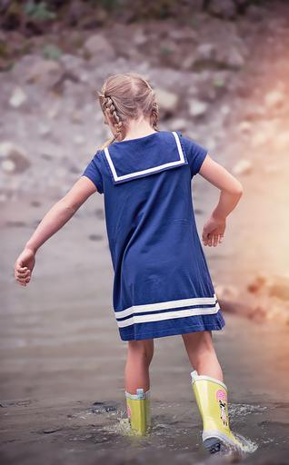 Keywords: person human child girl water bach rubber boots nature out portrait