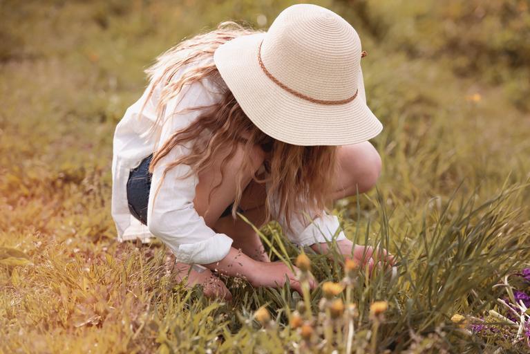 Keywords: person human female girl hat meadow nature lighting out portrait
