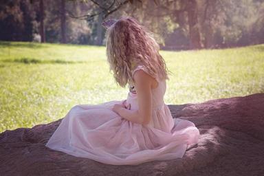 Keywords: person human girl child blond long hair lure dress pink nature out portrait
