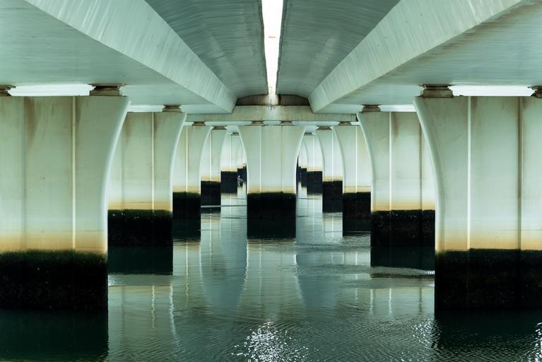 Keywords: perspective bridge building water girder construction