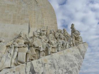 Keywords: perspective monument sky clouds outside statues portugal lisbon
