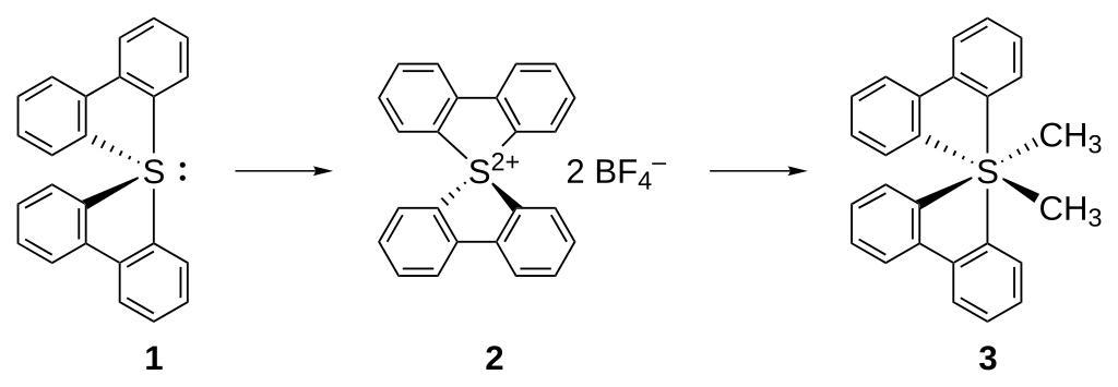 Keywords: Persulfurane synthesis.svg Reaction scheme of the synthesis of all-carbon persulforane Selfmade with ChemDraw 2006-09 Calvero PD Chemical reactions