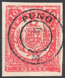 Keywords: Peru Puno 1882 Sc15N4.jpg en Peru Puno 1882 Sc15N4 Provisional issue of Arequipa overprinted in blue for use in Puno ru естный выпуск с надпечаткой «Puno» «Пуно» на ма ках А екипы 1882 Скотт 15N4 1882 own scan Post of Peru other versions Custom license marker 2016 06 24 PD-old-100 Local stamps of Peru Overprints on stamps of Peru |