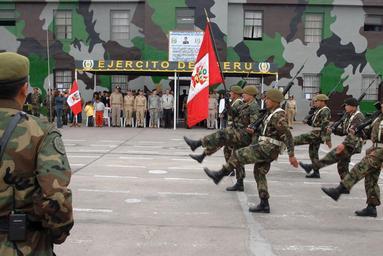 Keywords: PeruvianArmySoldiers.jpg Peruvian army soldiers perform during a closing ceremony to celebrate the port visit of US hospital ship USNS Comfort T-AH 20 in Trujillo Peru http //www southcom mil 2007-08-12 Joshua Karsten Mass Communication Specialist 2nd Class PD-USGov-Military-Navy Military parades in Peru Color guards of Peru Goose step Photographs of military flags of Peru |