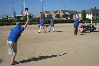 Keywords: Pétanque jeunm'lage Saint Hélyi-Avranches Jèrri Mai 2011 01.jpg Compétition d'pétanque pouor lé jeunm'lage Saint Hélyi-Avranches à Saint Hélyi Jèrri Mai 2011 Pétanque competition between twin towns Saint Helier and Avranches hosted in Saint Helier Jersey May 2011 own photo 2011-05-14 09 59 49 Man vyi 2011 in Saint Helier Jersey Weighbridge Place Saint Helier Pétanque jeunm'lage Saint Hélyi-Avranches Jèrri Sports in Normandy Ariadne steam clock |