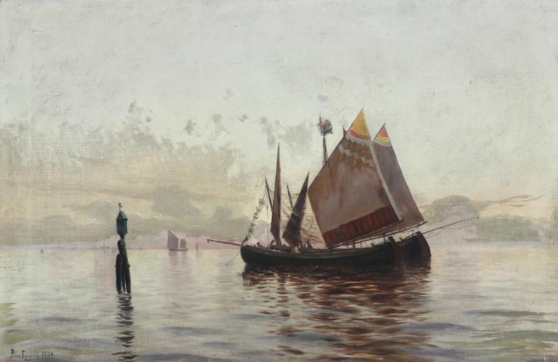 Keywords: Peter Eggers - Marine - 1884.png Johan Peter Eggers 1855-1907 1884 technique Oil canvas cm 54 83 object history Auctioned by Bruun-Rasmussen Auctions December 2016 credit line Peter Eggers 1884 lower left signature and date accession number http //www bruun-rasmussen dk/search do pg 9 iid 300898945 lang en cid 453 mode detail bruun-rasmussen dk PD-old-auto-1923 1907 19th-century oil marine paintings 1884 oil on canvas paintings