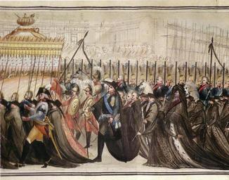 | Keywords: Peter III of Russia's burial det13.jpg Вто ичные похо оны Пет а III 2 декаб я 1796 г Составить п едставление о том как выглядела т ау ная п оцессия мы можем по ее изоб ажению сделанному неизвестным по всей ве оятности итальянским художником Изоб ажение это п едставляет собой улон длиной 15 8 м и ши иной 0 75 м Цент т ау ной п оцессии - колесница с са кофагом под балдахином Рядом с ней идет импе ато с ма шальским жезлом и т остью следом импе ат ица а ия Федо овна с доче ьми и свитой http //babs71 livejournal com/196710 html ~ 1796 Italian anonimous Peter III's burials 1796 Files uploaded by Shakko from various sources PD-Art Paul I of Russia Maria Feodorovna Sophie Dorothea of Württemberg Ermine clothing in art |