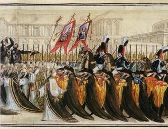 | Keywords: Peter III of Russia's burial det09.jpg Вто ичные похо оны Пет а III 2 декаб я 1796 г Составить п едставление о том как выглядела т ау ная п оцессия мы можем по ее изоб ажению сделанному неизвестным по всей ве оятности итальянским художником Изоб ажение это п едставляет собой улон длиной 15 8 м и ши иной 0 75 м За ними следует шествие духовенства с хо угвями и це ковный хо есколько гене алов несут на подушках о дена и две земельные ко оны Пет а III соп овождаемые ст оем лейб-гуса и Ки аси ского наследника полка http //babs71 livejournal com/196710 html ~ 1796 Italian anonimous Peter III's burials 1796 Files uploaded by Shakko from various sources PD-Art |