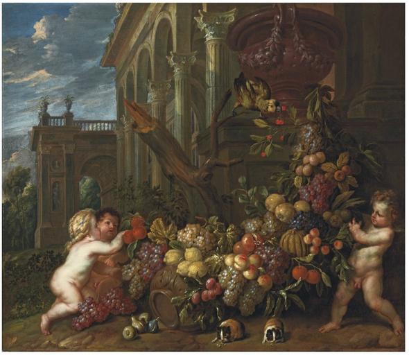 | Keywords: Peter Ykens and Jan Pauwel Gillemans - An architectural capriccio with putti around a swag of fruit, with a parrot and guineau pig.jpg  Artwork Creator Peter Ykens and Creator Jan Pauwel Gillemans II en An architectural capriccio with putti around a swag of fruit with a parrot and guineau pig 1671 - 1695 http //www christies com/lotfinder/paintings/peter-ykens-and-jan-pauwel-gillemans-5221833-details aspxww lukasweb be/en/photo/bloemenkrans-als-omlijting-van-de-heilige-familie-0 Oil canvas size cm 61 69 8 object history credit line signed 'P YKENS' lower right Sold at Christie's 8 July 2009 London lot 173 accession number PD-old-100 PD-old-100 Peter Ykens Jan Pauwel Gillemans II 17th-century oil on canvas paintings |