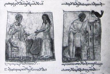 | Keywords: Peter's Denial. Jruchi Gospels, 12th c..jpg en Peter's Denial A miniature from the Jruchi Gospels Georgia century 12 ამირა აშვილი შ ქართული ხელ ვ ების ისტ რია Tbilisi 1971 author PD-Art Second Denial of Saint Peter Jruchi II Gospel Third Denial of Saint Peter |