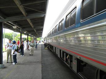| Keywords: Petersburg VA Amtrak train stop 1.jpg  Petersburg Amtrak station in Virginia - view at platform with an Amtrak train stop facing south own 2010-08-27 CZmarlin ” Christopher Ziemnowicz releases all rights but a photo credit would be appreciated if this image is used anywhere other than Wikipedia Please leave a note at Wikipedia http //en wikipedia org/w/index php title User_talk CZmarlin action edit section new here Thank you en I the copyright holder of this work hereby release it into the public domain This applies worldwide thumb left The rear of the station viewed from under the canopy over the platform thumb center View towards the north thumb left Detail of the rear station entrance that looks over the platform and trains thumb center View of the station and platform with Amtrak train heading north thumb left North bound Amtrak train while stopped in Petersburg VA Petersburg Amtrak station Amfleet passenger cars |