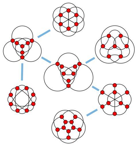 Keywords: Petersen family.svg Petersen family a family of seven graphs reachable from the complete graph K<sub>6</sub> and the Petersen graph by Δ-Y and Y-Δ transforms own David Eppstein 2010-07-25 Files by User David Eppstein from en wikipedia Petersen family |