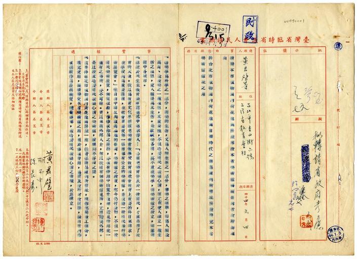 | Keywords: Petition for art museum 1955.jpg en petition by artists of Taiwan for the establishment of Taiwan Provincial Art Museum zh 黃君璧 廖繼春 林玉山 陳慧 楊三郎 郭雪湖 石樵 梅樹等請願建議就臺北市植物 荷花池側房屋籌設臺灣 美術館案 1955-01-05 http //catalog digitalarchives tw/item/00/17/3f/e2 html 黃君璧 廖繼春 林玉山 陳慧 楊三郎 郭雪湖 石樵 梅樹等 other versions Custom license marker 2016 11 19 PD-ROC-exempt Taiwan in the 1950s National Taiwan Museum of Fine Arts Lin Yu-shan Li Mei-shu Yang San-lang | ||||