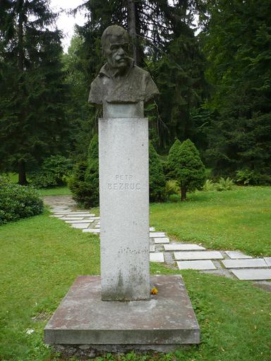 Keywords: Petr betruc.JPG Statue of Petr Bezruč in Karlova Studánka Own 2008-08-20 Viki2007 Karlova Studánka Petr Bezruč Busts in Moravian-Silesian Region