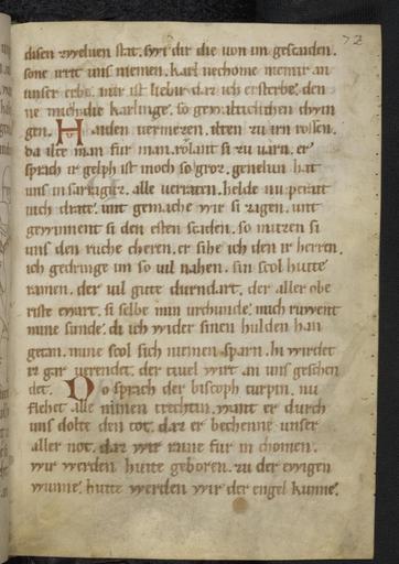 Keywords: Pfaffe Konrad - Rolandslied - cod. pal. germ. 112 - 145.jpg Pfaffe Konrad - Rolandslied - cod pal germ 112 - jpg 144 146 Rolandslied des Pfaffen Konrad à bersetzung bzw Bearbeitung der altfranzösischen Chanson de Roland um 1100 Blatt 72r Pfaffe Konrad Rolandslied Pergament 123 Blatt 21x15 cm Regensburg/Hessen-Thüringen Ende 12 Jahrhundert Cod pal germ 112 Universitätsbibliothek Heidelberg http //diglit ub uni-heidelberg de/diglit/cpg112 century 12 Pfaffe Konrad PD-old Rolandslied Cod Pal germ 112 |